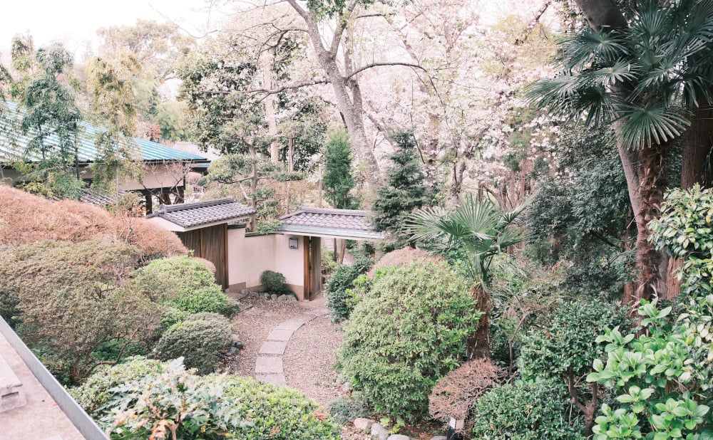 そんな鎌倉山に本店を構えて今年で創業50年を迎えるのが、「ローストビーフの店鎌倉山」。お店に向かうと、手前に門があります。門をくぐって玄関まで、背の高い杉や桜の木が並ぶ長いアプローチが続き、景色をゆっくりと楽しみながら歩きます。高いビルがなく空が広くて、鎌倉の山側を丸ごと見下ろすことができる風通しのいい風景が広がります。