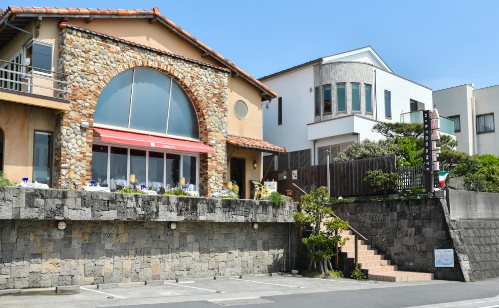 海沿いには、オーシャンビューのおしゃれなレストランが軒を連ね、多くの観光客が訪れます。その中でも老舗のイタリアンレストランが「リストランテ アマルフィイ」。七里ヶ浜の景色を見て、アマルフィイという名にピンときた人も多いでしょう。海岸線を走る道路と傾斜のある土地が広がる景色は、イタリアのアマルフィ海岸によく似ているのです。