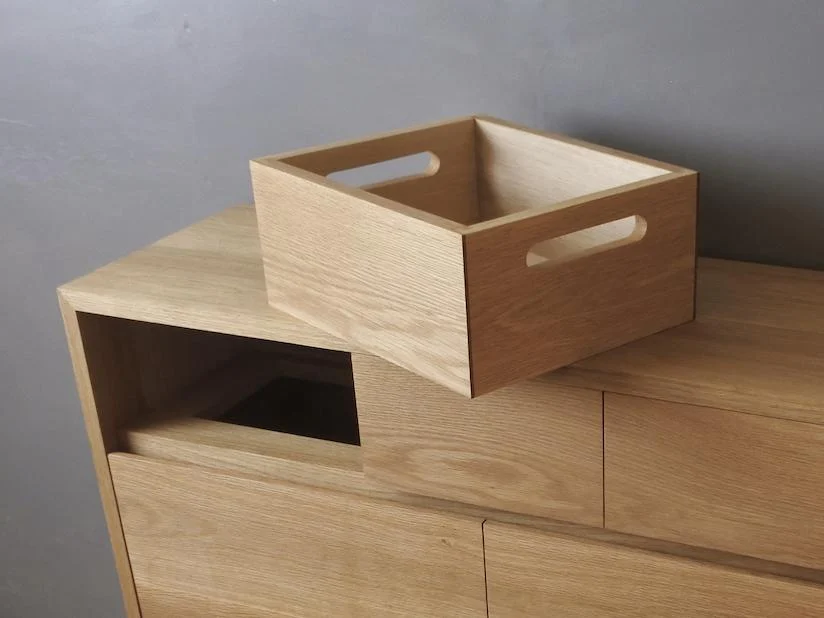 こちらは、持ち手が付いた箱が引き出しになっているサイドボードです。引き出しが簡単に持ち運べる設計になっているのが心にくいですよね!