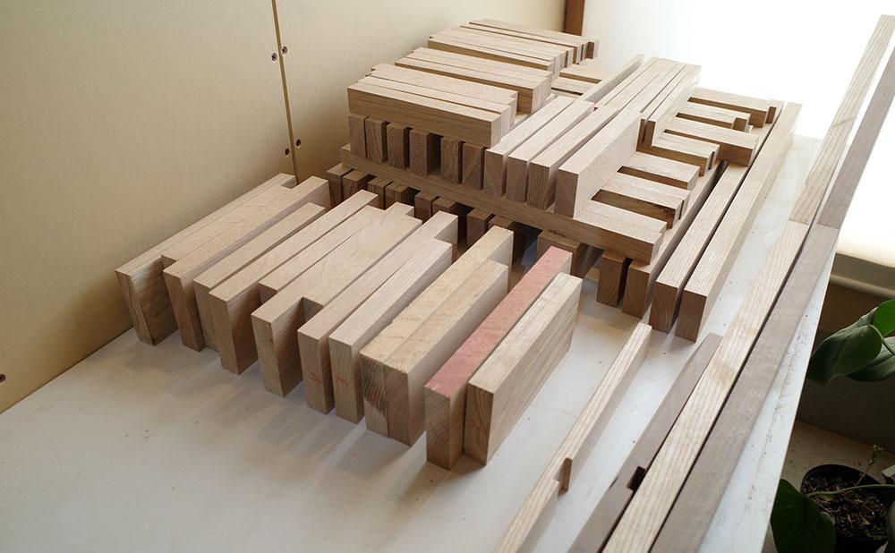 デザイナーとして忙しい日々を送りながらも、当時魅力を感じていた江戸指物の塾の門を叩きます。「江戸指物は釘を使わずに木を組み上げて作る木工品です。もともと自然なものが好きだったことと、自分の手で最初から最後まで作り上げられるところに惹かれました」。そうして清水さんは、江戸物指で学んだ技術とデザインの経験を活かし、「現代のインテリアにもなじむ、身近な家具を自分の手でつくろう」と、スタジオを設立しました。