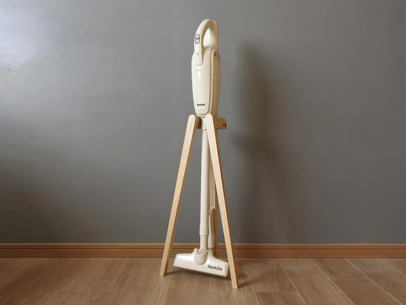 ダイソン、マキタなどの掃除機を立てかけられるスタンドも。ついそのあたりの壁に立てかけてしまいがちな掃除機を、まるで楽器のように美しく置いておくことができます。隠すのではなく、あえて見せるという発想がなんともユニーク。