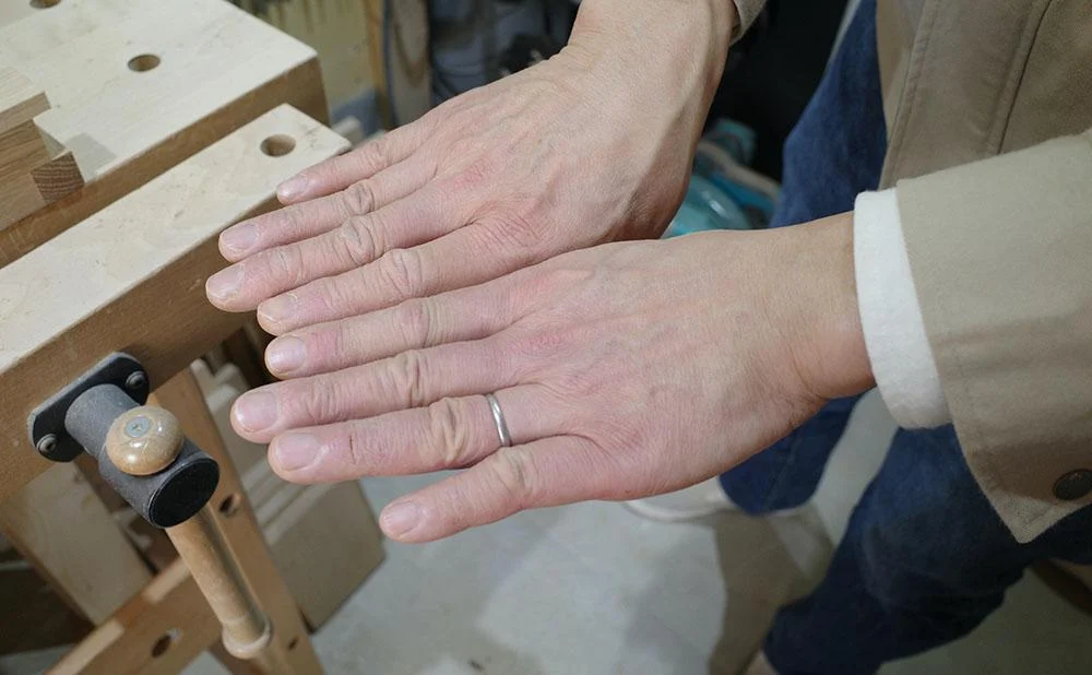 そう語る清水さんの手にふと目が留まりました。ご本人の雰囲気からすると意外なほど大きな手と太い指。「最初はこんな手ではなかったんですが、物を作っているうちにどんどん大きくなってしまって。指にも筋肉がつくんですかね?」